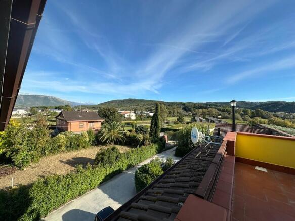 From the open plan living area, a door opens to the large terrace, with sweeping views. There is a small walk-in storeroom opening from the terrace.