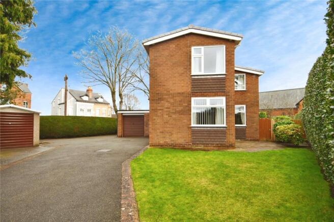 The property sits on a large plot, with a driveway for multiple vehicles and boasts two garages.