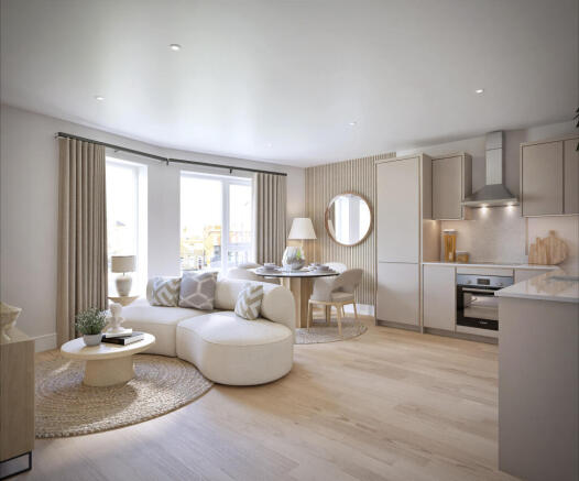 The open-plan living and dining area offers generous proportions, ideal for both relaxing and entertaining, with large windows that flood the space with natural light and provide a bright, airy atmosphere. The bedroom is well-sized, easily accommodating a king-size bed and additional furniture, while featuring built-in wardrobes for ample storage. The modern kitchen is fully fitted with high-end integrated appliances, sleek cabinetry, and premium finishes, creating a stylish yet practical space for everyday living. The bathroom continues the contemporary aesthetic with elegant tiling, a luxurious bathtub with shower, and high-quality fixtures. Every inch of this apartment has been thoughtfully designed to maximise space and comfort, offering a refined urban retreat in the heart of Wandsworth.