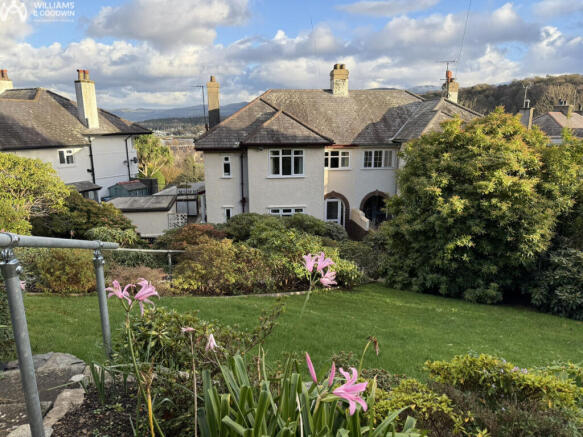 On the Upper Garth Road side is a tiered slightly slopping garden with lawn and shrub areas.
