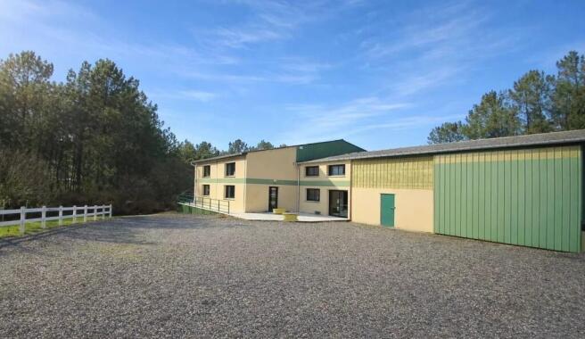The purpose built building with commercial kitchen and 235m² reception room with bar, has the capacity to host large groups and is just waiting to be discovered. On the first floor there is a large mezzanine level (94m²), 3 bedrooms and a bathroom. To the front facade there is a large gravel driveway with plenty of room for parking. The property has a DPE rating of C.