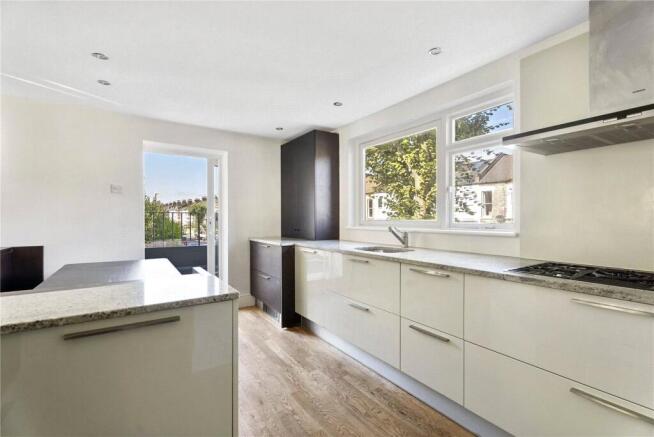 The separate modern kitchen/breakfast room is thoughtfully designed with integrated appliances and ample space for a dining table, seamlessly opening onto a south facing private roof terrace—perfect for al fresco dining or relaxing outdoors.