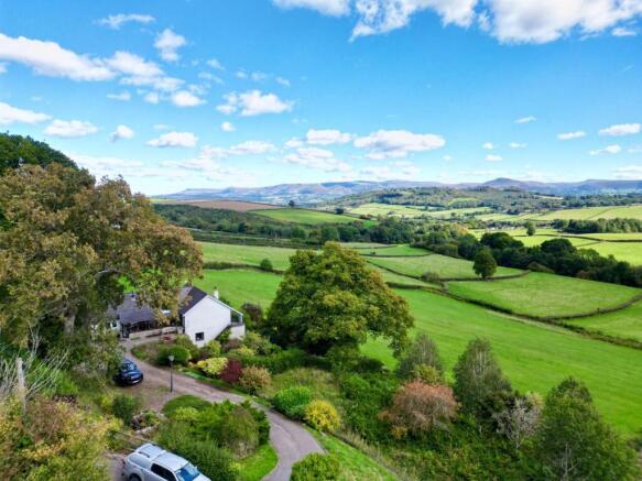 From its elevated position, the property captures spectacular panoramic views — sweeping across the eastern edge of the Black Mountains above Hay-on-Wye, over The Allt, and towards Pen y Fan, the highest peak in South Wales. Few homes can boast such an inspiring backdrop.