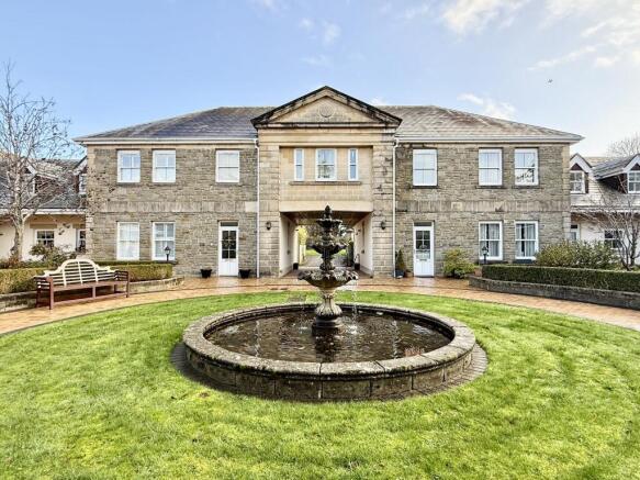 Outside lighting. Well maintained communal courtyard with shrubs, water fountain, seating & security lighting with original double gates & views over Chepstow.