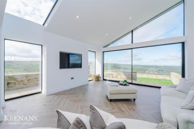 Reception Room - 4.70m x 4.50m (15'5 x 14'9) - Two composite double glazed picture windows, skylight, spotlights, two feature wall lights, television point, herringbone wood effect lino flooring with underfloor heating and aluminium double glazed sliding door to rear.