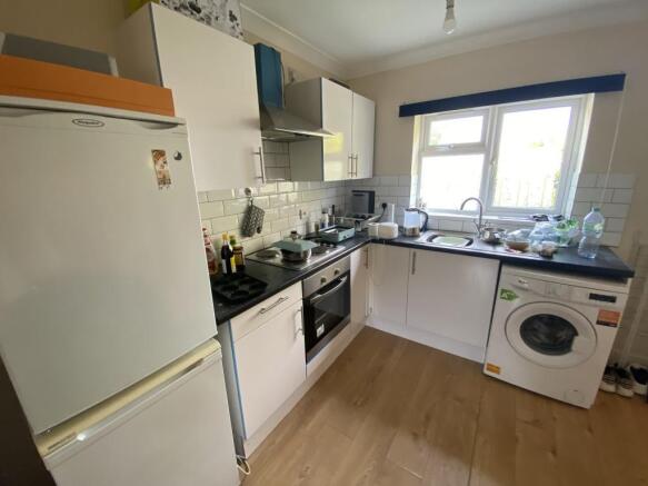 The flat is part furnished and offers comfortable living with a bright studio room, kitchenette, and private bathroom facilities. The property also benefits from on-site parking, a valuable addition for this area.