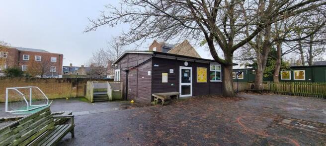 The property comprises two modular cabin buildings with tarmac playground and some small timber decking area and divided from the school via a picket fence.
