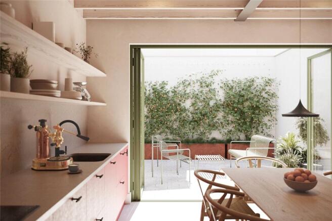 Every home at Harts Yard benefits from private outdoor space, including courtyards, decked terraces, and sky gardens alongside allocated parking, bespoke kitchens, designer CP Hart bathrooms and underfloor heating via Air Source Heat Pumps.