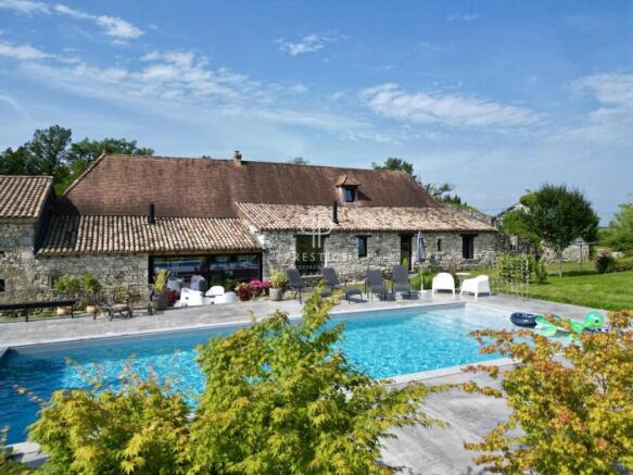 4 bedroom annex, nestling in 7 acres of glorious land with gardens, pool, trees and outbuilding, ideally located halfway between the splendid medieval town of Issigeac and the charming bastide town of Villereal.