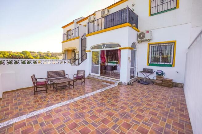 Outside, the garden has been fully tiled for easy maintenance , creating a pleasant space to relax. Forming part of a well-maintained community, residents have exclusive use of two nearby communal swimming pools, maintained via a small annual fee.