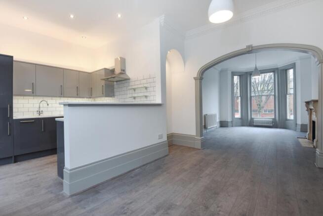 This amazing property is situated within this impressive building and set over the bottom two floors with direct access onto a large garden. The property includes two bathrooms and a lovely modern open plan fitted kitchen / diner with appliances and continues thorough into the spacious and bright reception area.