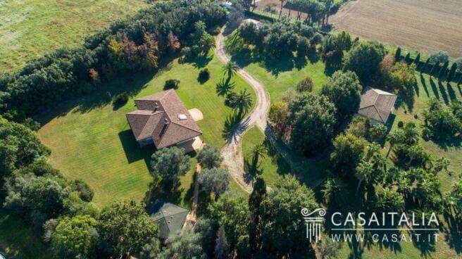 Villa with guesthouse, multipurpose room, 2 extra rooms and carport, surrounded by private grounds measuring 2 hectares, in a flat and private location, only 6 km from the sea and Latina.