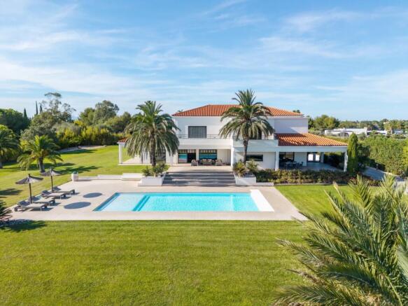 The villa offers 485 m² of living space, with generous volumes and timeless architecture: