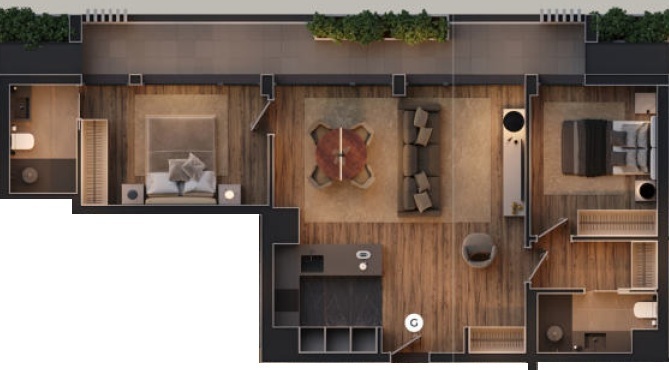 The private areas range from 63 m² to 130 m², ensuring a diverse offer, capable of responding to different lifestyles and user profiles.