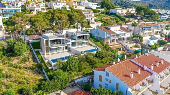 Spread over three levels-two floors plus a semi-basement-the villa has been designed with an elegant contemporary style and high-quality finishes. The main entrance is on the first floor, where you''ll find a spacious double bedroom, a full bathroom, and a bright living and dining area with an open-plan kitchen. Large floor-to-ceiling windows open onto a terrace with stunning sea views. An 8 m² jacuzzi is also located here-perfect for relaxing while taking in the beautiful scenery.