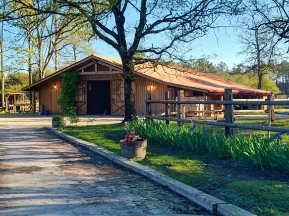 Coldwell Banker Immoba Realty, Andernos-les-Bains Real Estate Agency, presents this magnificent equestrian estate in Lacanau. Nestled in a lush natural setting, the domain extends over approximately 7 hectares of fully fenced land, bordering the forest with direct access to the lake—an idyllic environment for lovers of horses, nature, and authenticity.