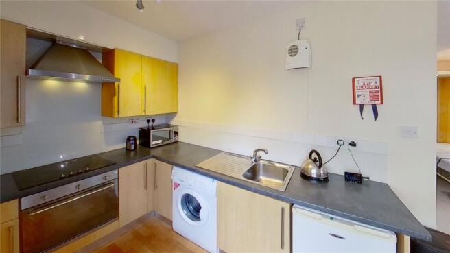 DEPOSIT £500 - Accommodation comprises a hall with a storage cupboard, a large bedroom/living areawith double fold down bed (can be concealed against the wall), a separate kitchen, and a modern shower over bath bathroom. The flat comes with private parking and the block is set within landscaped grounds.