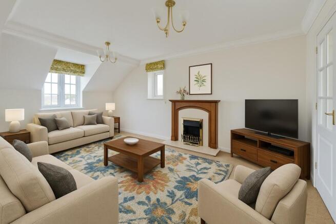 - Bright dual-aspect lounge with electric fireplace