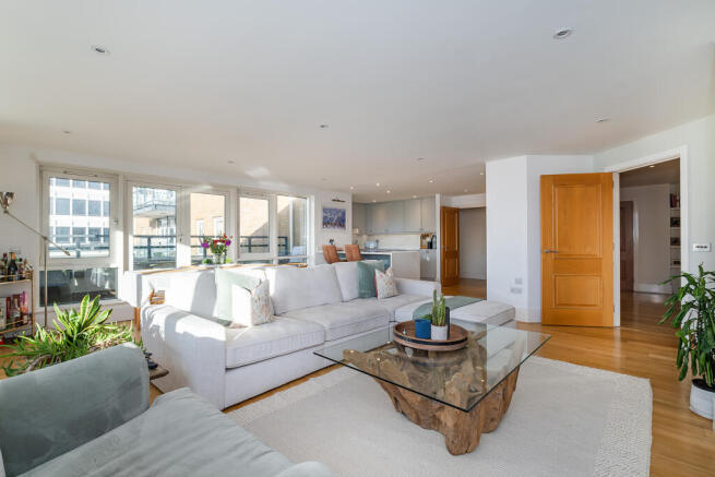 The apartment is positioned on the fourth floor of the building, accessed by either stairs or lift. With internal accommodation over one floor, the property has an excellent lateral feel, and due to its triple aspect enjoys fantastic views and great natural light throughout the day. An entrance hall with laundry and coats cupboard opens into the impressive open plan reception space with solid oak floors and a newly fitted kitchen offering smart, well planned work and cupboard space, breakfast bar and a range of integrated appliances. Moving through to the reception space, the dual aspect windows capture both the southern and western elevation, with doors leading to a west facing private balcony. Back through the entrance hall, the principal suite is a generous size, enjoying the morning light and views towards the river, boasting extensive built-in wardrobes, dressing area and a modern en-suite shower room. The guest bedroom has further built in wardrobes, and another en-suite shower room, with both rooms having access to an east facing terrace. The third bedroom also has views towards the east, and river, and is serviced by a family bathroom from the entrance hall.