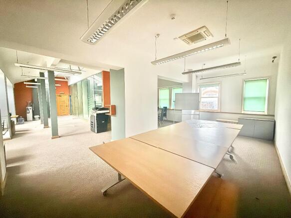 The accommodation benefits from excellent natural light throughout, delivered via a combination of perimeter windows and multiple rooflights, which is a real advantage at this level. The space has good ceiling heights and is supported by exposed columns and structural features that add character without compromising usability. Existing finishes include suspended lighting, carpeted floors, air conditioning and fitted storage, providing a solid, functional base for immediate occupation.