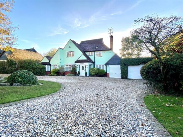 Exterior Rear - 62.18m x 47.40m at widest point (204'0" x 155'6" a - Starting from rear of property with raised veranda style patio. Steps leading down to further crazy paved patio with gravel edge pass and sculptured rockery and lawned areas sloping down to main lawn (Approx. halfway down the garden). Various mature trees including conifers, silver birch and eucalyptus. Well secluded towards the end of the garden is further mature trees and rhododendron bushes backing directly onto brook. Timber garden shed.