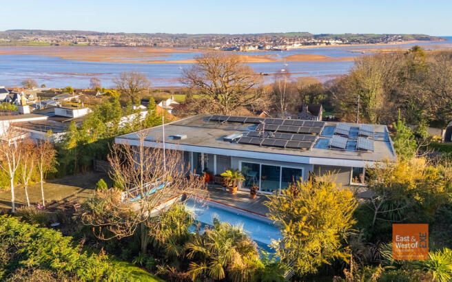 From the moment you enter, the home is designed to impress. A striking double-aspect entrance hall, with expansive patio doors opening onto a small balcony, perfectly frames the breathtaking estuary views. At the heart of the property lies a spacious, light-filled open-plan kitchen, dining, and living area. The high-quality kitchen features wood-grain cabinetry, polished granite work surfaces, excellent storage-including a large matching central island-and a stunning bi-fold window that captures uninterrupted estuary vistas. Sliding doors at the rear open directly onto the sun deck and pool area, creating an exceptional space for entertaining.