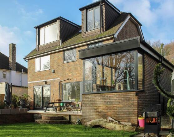 Arranged over three floors, the property offers exceptional versatility, generous proportions and an impressive south-facing garden. The top floor features two double bedrooms within a high-quality loft conversion, including a south-facing dormer with potential bathroom to an exclusive suite. The first floor provides three further bedrooms (two doubles) and a newly fitted, modern white-and-wood family bathroom. The ground floor includes an entrance porch, spacious hall, downstairs cloakroom, a rear sitting room opening onto the south-facing garden, a refurbished kitchen/family room with bespoke,wooden kitchen units and parquet flooring, a utility room, and a magnificent 28 ft studio/second sitting room one of the true highlights of this home. A long driveway provides parking for multiple cars, and the raised south-facing rear patio overlooks the 50 ft lawned garden beyond. The property benefits from powder-coated grey double-glazed windows and gas central heating.
