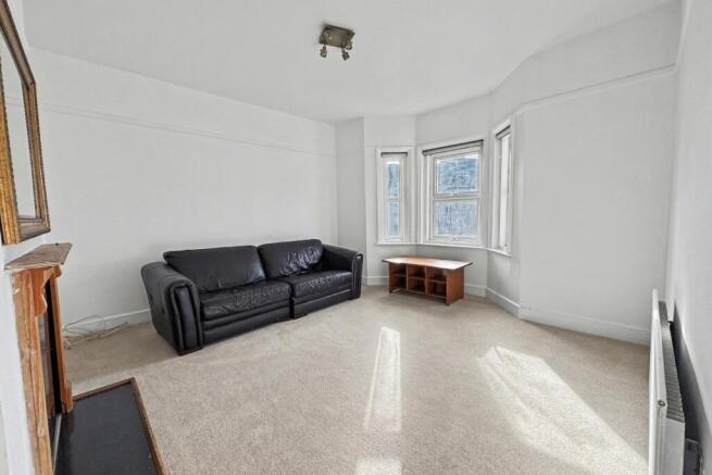 The bright and spacious living room features a charming bay window and provides ample space for a range of furniture.