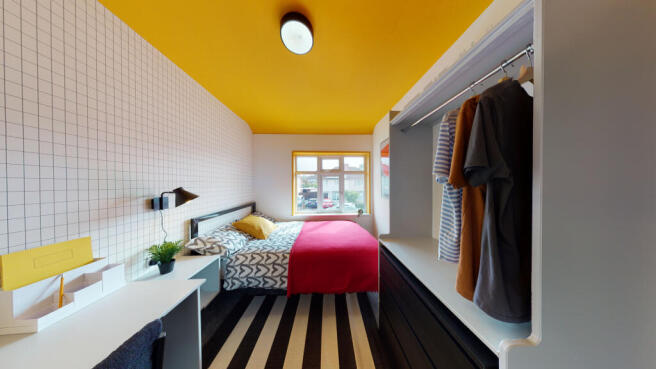 Each bedroom is spacious and thoughtfully furnished with a double bed, wardrobe, desk, and shelving, creating your own private space to study and unwind.