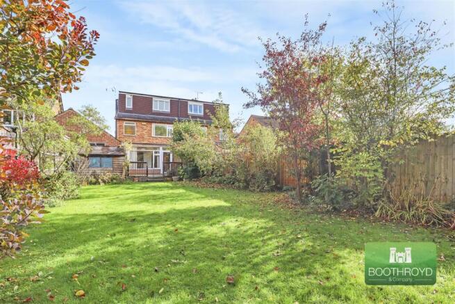 Rear Garden - With a large decked patio and steps down onto the lawn with mature borders