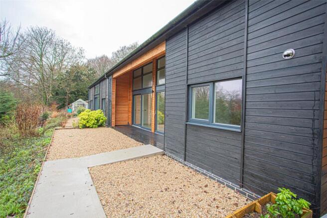 The property benefits from a front gravelled garden area, parking for 2 cars with a visitor spot shared between 3 properties, gravelled garden to the front and decking and garden areas to the rear with flower and shrub planter and a bank leading down to a stream. A bin storage/shed/