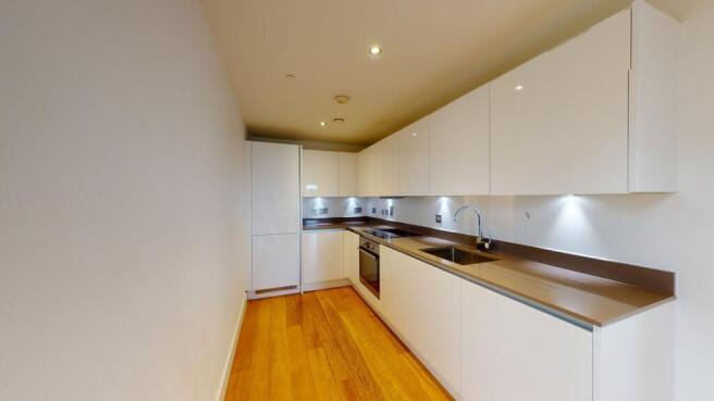 This dual aspect corner apartment briefly comprises a spacious double bedroom, a high gloss white kitchen open plan to the reception area with access to a private balcony, and a modern family bathroom.