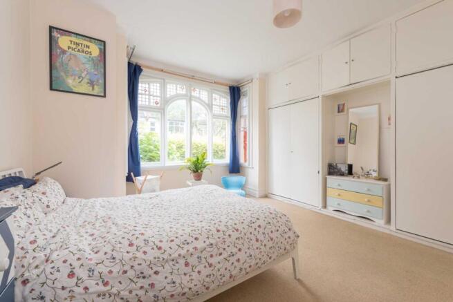 Bedroom 1: To front. Bay window with stained glass upper insets, Coving. Double door fitted wardrobes.