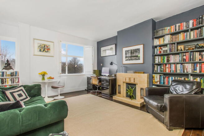 To the front of the building is a spacious reception room enjoying uninterrupted views across Clapham Common, complemented by plantation shutters, polished wooden floors, a character fireplace and bespoke fitted cabinetry. The separate kitchen is thoughtfully designed with integrated appliances, quality worktops and excellent storage, while the recently refurbished bathroom offers a stylish white three-piece suite.
