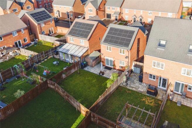 Upstairs, the master bedroom boasts a modern en-suite shower room, while two further well-proportioned bedrooms are served by a sleek family bathroom suite.