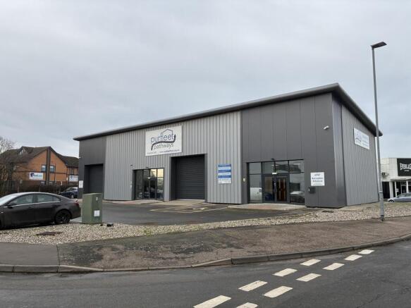 The property occupies a prominent corner position at the junction of Bergen Way and Hamburg Way, featuring a tarmac circulation area with approximately 16 parking spaces. Constructed in 2020, it is a modern unit incorporating a mono-pitched roof, steel portal frame, and profiled steel sheet cladding to all elevations and the roof. The building benefits from two electric roller shutter doors (4m x 4m) and two glazed pedestrian entrances.