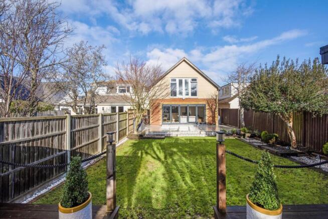 The exterior of the property has been transformed to create a sophisticated, low-maintenance environment. The rear garden features newly landscaped porcelain-tiled patios and a side walkway, leading to a luxury composite garden room completed in 2022. This impressive all-season space is ideal for entertaining or relaxation, with expansive surrounding decking and a sheltered built-in jacuzzi that can be enjoyed throughout the year.