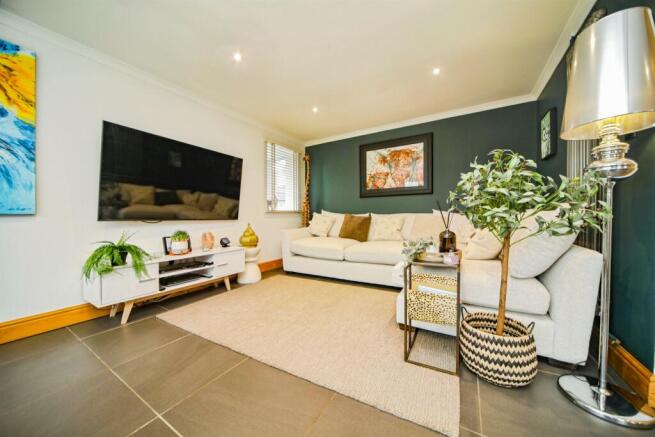 Window to side, bi-fold doors to rear, coved ceiling, spotlights, tv point, radiator and ceramic tiled flooring.