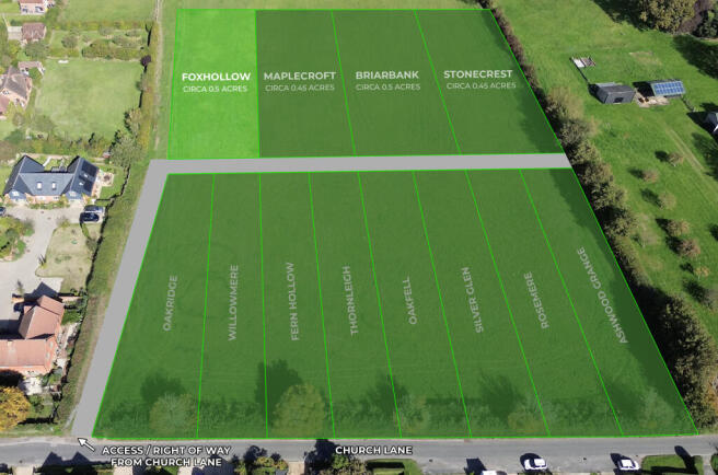 Foxhollow, Church Lane. Circa 0.5 Acres, Freehold Land in an Excellent Location with Road Frontage. Future potential for various development, subject to all necessary consents. Prospective purchasers must rely solely on their own enquiries.