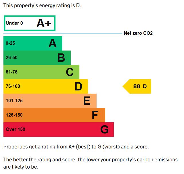 An energy performance certificate (EPC) is available upon request. The property has an energy rating of D (88).