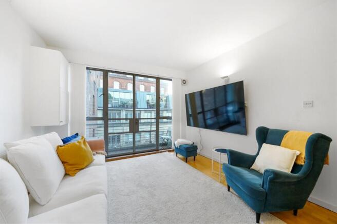 Located on the second floor, accommodation comprises entrance hall, reception room with wood floors and open plan kitchen and doors to private balcony, bedroom with fitted wardrobes and doors to balcony, bathroom. Internal floorspace extends to 459 sq ft (42.7 sqm).
