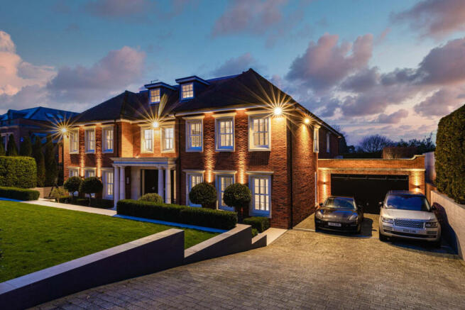 The front of the property is accessed by twin sets of electric gates, leading to two driveways with one giving access to the integral garage.