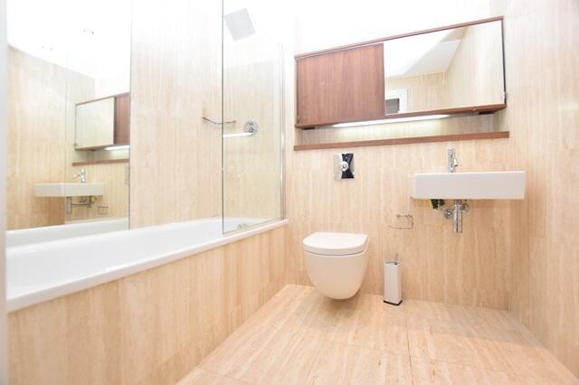 Inside, the apartment features a spacious and well-appointed bedroom, a contemporary bathroom, and an open-plan living area with a modern kitchen, all finished to a high standard. Large windows fill the space with natural light, creating a bright and welcoming atmosphere throughout.