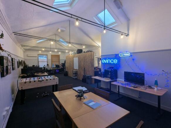 - Bright, skylit workspace.