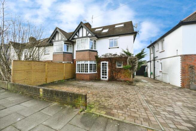 Nestled in a desirable family-friendly enclave, this 1937 semi-detached home blends timeless charm with modern practicality. Three double bedrooms and a further single bedroom including a principal bedroom with a Juliet balcony and en-suite, while a spacious family bathroom and a convenient ground-floor cloakroom service the layout. The house retains distinctive period features such as an original front door and stained-glass windows, and there is potential for a rear extension (subject to planning). A versatile vendor suite adds flexible living options. The well-appointed kitchen features Bosch appliances, an induction hob and underfloor heating, and the west-facing rear garden with a decked area offers outstanding views towards the South Downs National Park. Ample parking is provided for three cars and a garage completes the property.