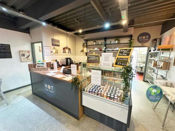Main entrance, glass fitted front, entrance seating for 60, W/C, service counter providing chilled display unit, hot drinks preparation area, waiting area, office, dry store area, good sized kitchen providing cold storage, heated pass, washing up area, frying area, hot plate, 4 burner oven, preparation area.