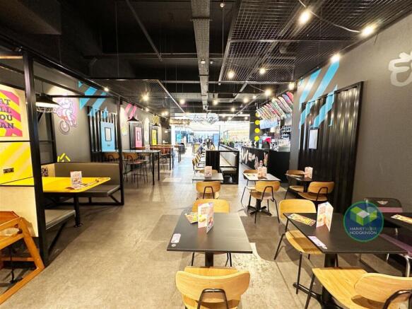 Seating area for 20, reception area with appointed seating area for 60, large service counter with large ice cream display unit, cake display unit, ice cream machine, waffle preparation area, hot drinks preparation area, slush machine, cold storage, rear washing up room, large rear storeroom, walk-in freezer, office area, staff W/C and delivery entrance.
