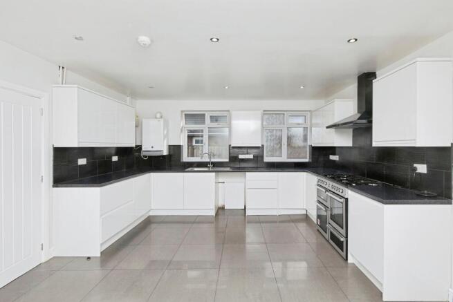 A well arranged kitchen, offering good storage, worktop space, and room for appliances. There is also plenty of space for a dining table and access to the rear garden.