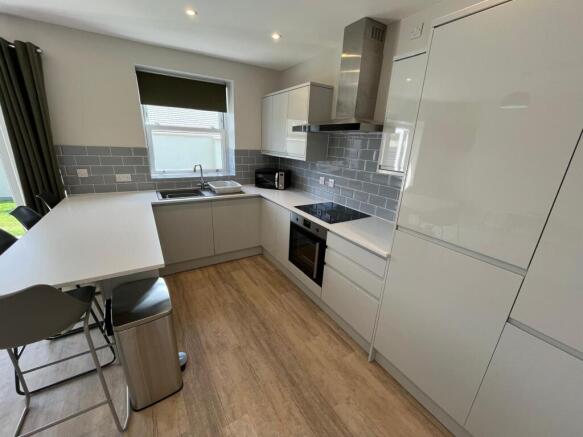 Breakfast bar with seating, plus fully fitted white goods