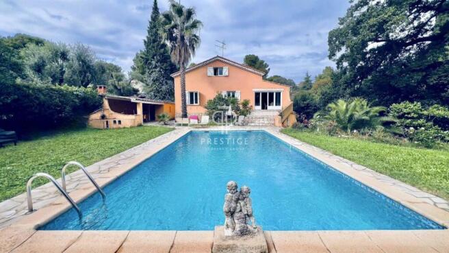Four bedroom villa in Mougins, within easy reach of amenities, with swimming pool and mature gardens.